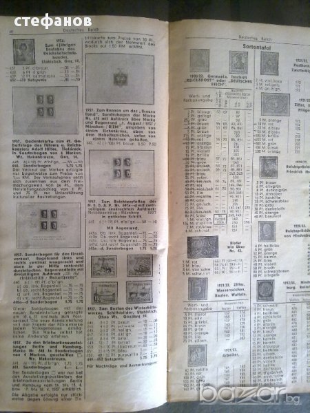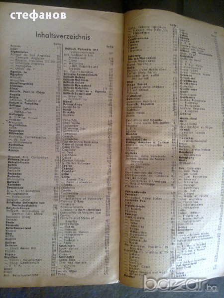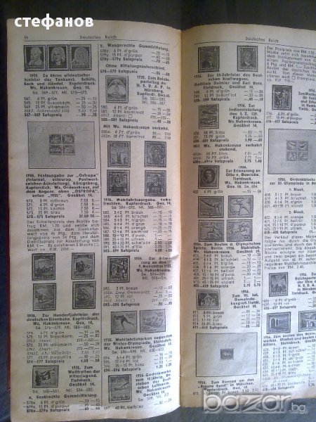 Каталога е с размери10 см широк, 23 висок и 4.8 см дебел с 672 страници. В него са описани и снимани с подробна информация всички марки излизали по целия свят - Европа, Африка, Азия и т.н., като са разбити подробно по държави, издавани до ноември 1937 г. Каталога е в отлично състояние като се има в предвид преклонната му 77 годишна възраст, както и че с него е работено. Няма липсващи страници. Немеца го е направил така че да не се разпадне след няколко прелиствания. Изпращам по Еконт с опция преглед преди да се плати и ползвате 20% отстъпка от куриерската услуга. Моля вижте и другите ми обяви.