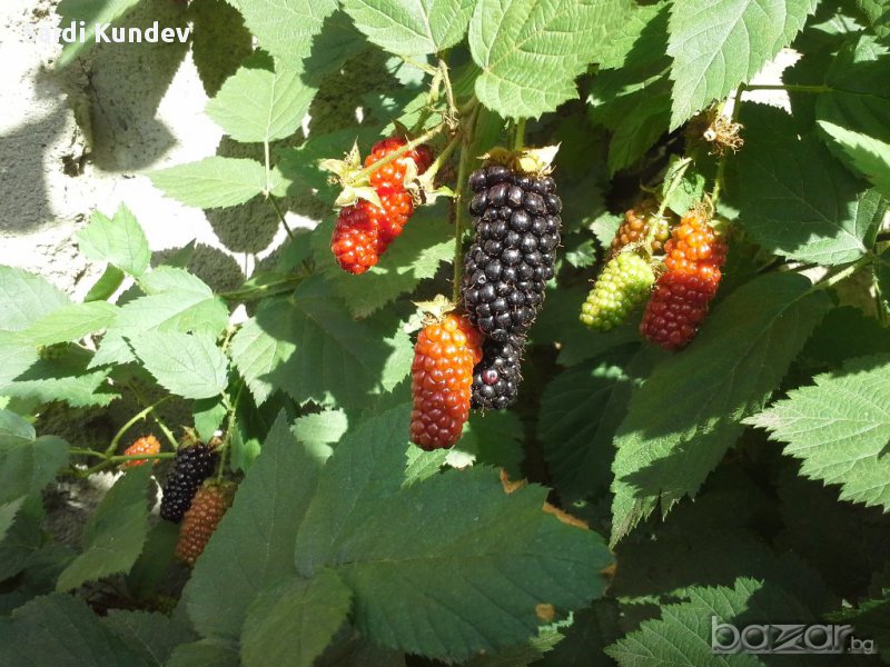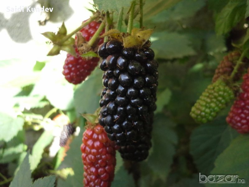 Новозенландски сорт с много едри плодове дълги от шест до осем сантметра плододава от юли до септември добивите са огромни около 15 до 20 килограма от едно растение засадени са в 1 литър контейнер плодът е много сладък траиноста е няколко дни къпини има различни сортове но това наистина е наи доброто сред къпините заслужава си да го имате броиките са ограничени за инфо виж в гугъл кундев Karaka black снимките са правени в моята градина