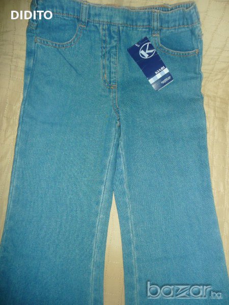 НОВИ дънки с етикет, р. 116 за 6 год. с мерки: цяла дължина 68см., дължина от чатала 45см., талия от 55см. до 70см. Дънките са купени от Германия. Може да погледните и другите ми обяви.