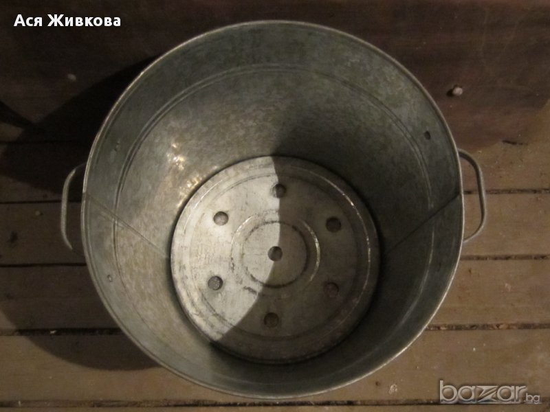 Метален съд с капак и двойно/подвижно/ дъно - вместимост 30-35 л.