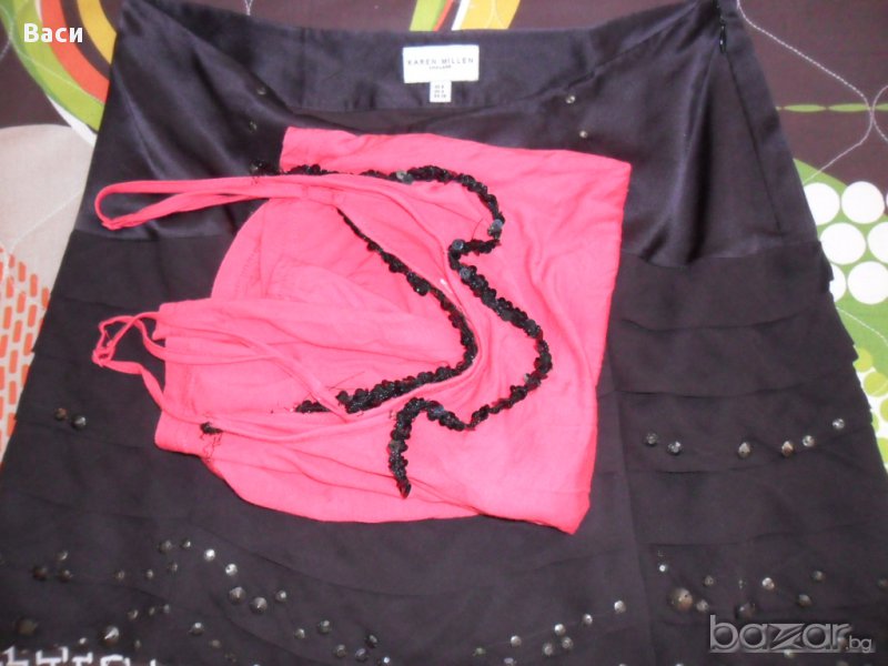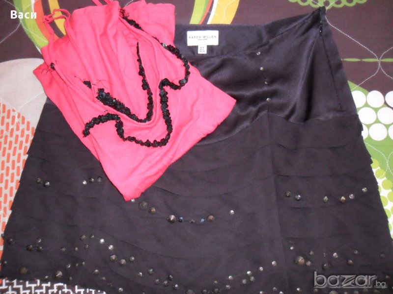 Оригинална елегантна пола Karen Millen декорирана с камъни 100 % коприна, размер С в отлично състояние.