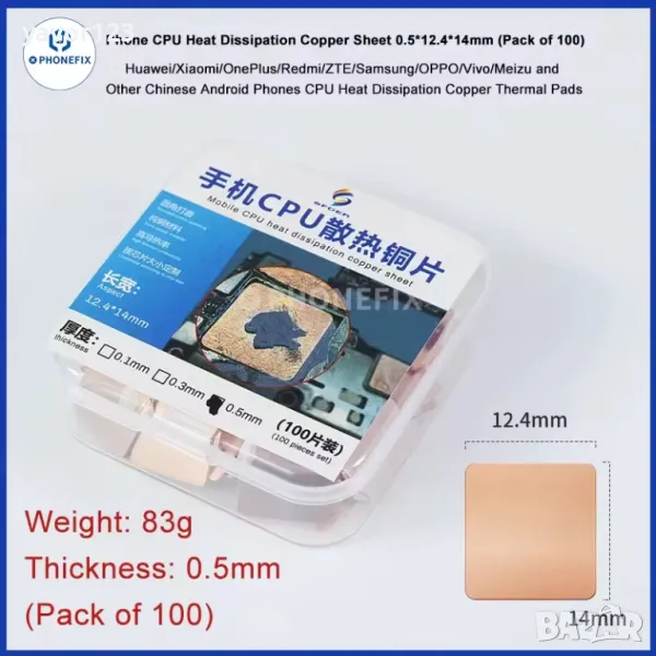 Качествени медни плочки 15х15мм с различна дебелина за лаптопи