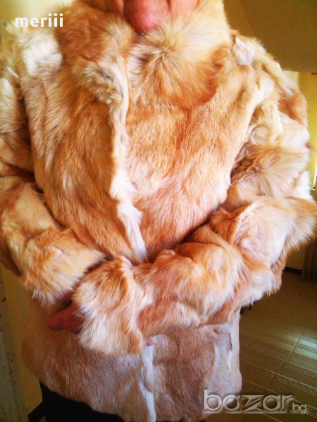 Дамско палто от естествена кожа от лисица с къс косъм. Палтото е без дефекти и следи от употреба по козината. В перфектно състояние. Носено е само 1 път!Закопчава се с кукички. Цветове са преобладаващо жълто с бяло и оранжево.Невероятна изработка!Палто от лисица - 100 процента естествена кожа!