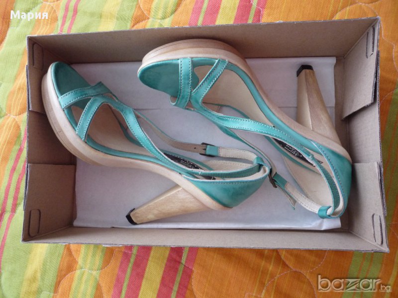 Летни обувки, сандали, нови, номер 36. Красив нежен цвят - тюркоаз. Леки. Височина на тока -11см, платформа - 2,5см.