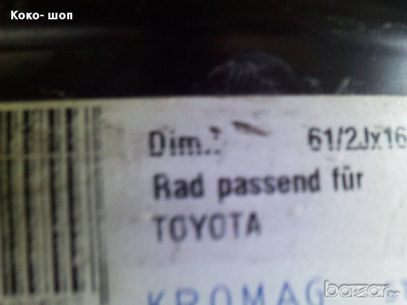 ОРИГИНАЛНИ единични тасове различни цолажи за ТОЙТА идр. цена:10до25лв. джанти 13цола 4по100/54ср. отвор- 20лв./бр. 16цола 5по114.3 за АВЕНСИС-КОРОЛА идр.- 50лв./бр. КРИК-КЛЮЧ-30лв. Багажник-40лв. и други в ОБЯВИТЕ.
