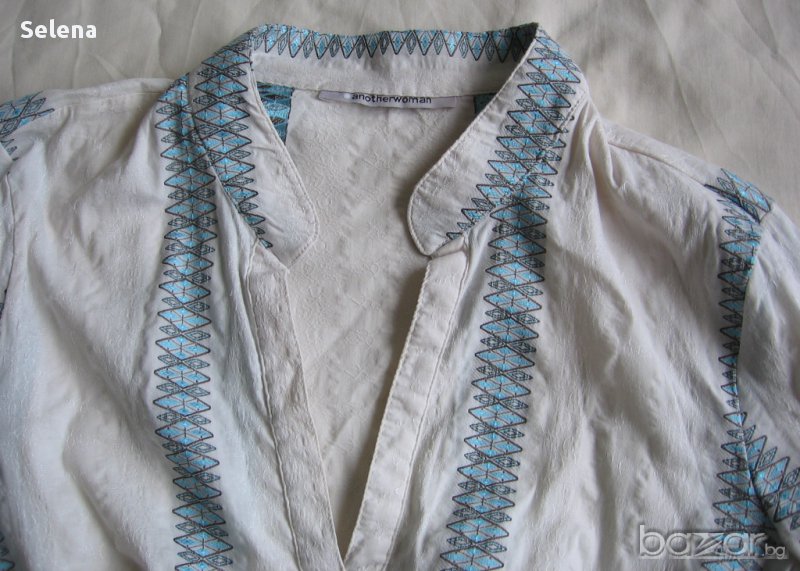 Дамска риза от еластична материя в бяло и синьо. Размер 40