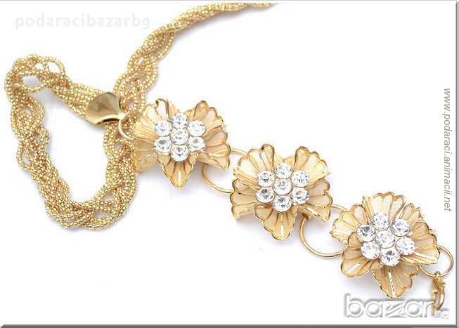 Забележителен дамски колан с три златни цветя, в които проблясват тичинки – кристали.Цветята бегло напомнят ефирните разтворени диви макове, затова и колана носи тяхното име.Красивият низ от три цветя продължава със златна метална плетеница във вид на плитка.Коланът е и мултифункционален.Той е съвършената добавка за вечерен фин тоалет, а същевременно може да се носи на ежедневен елек или дънки.Достатъчно дълъг е, освен основната част с плетеница има и удължаване, ще стане на всяка талия.Изборът е твой, дали ще го носиш стегнат или свободно падащ върху дрехата. Какво още да добавя?Достатъчна е една дума – разкош!
