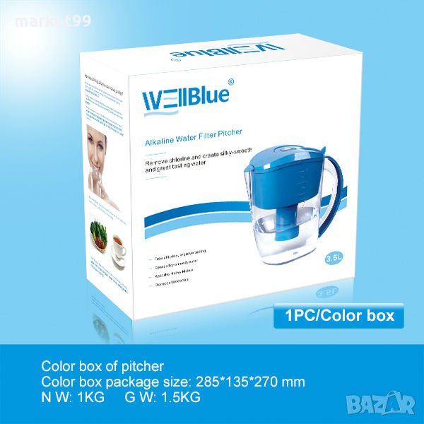Алкалната кана за филтрирана и минерализирана вода произвежда алкална вода с около 9.5 PH.