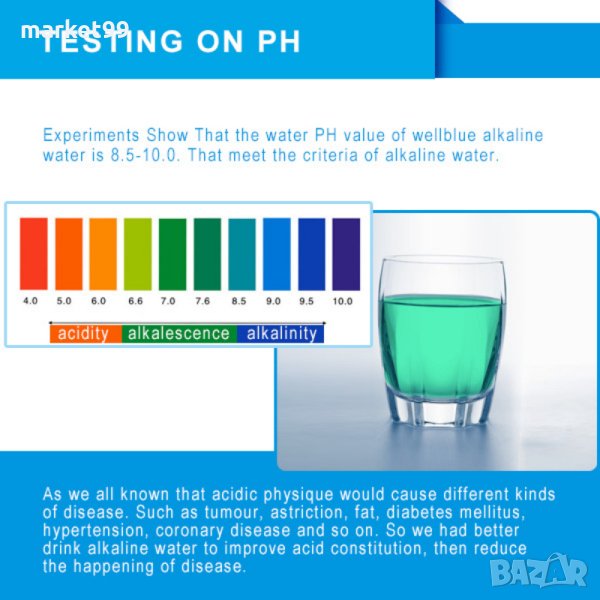 Тялото ни се нуждае от вода с внимателно подбрано PH за да функционира оптимално правилно. Алкалността в организма се определя от това, което ядем и пием. В днешно време повечето хора по света широко консумират киселинни храни и напитки, поради което е от изключителна важност да балансираме своята диета за да избегнем лошите последствия от окисляване на тялото.