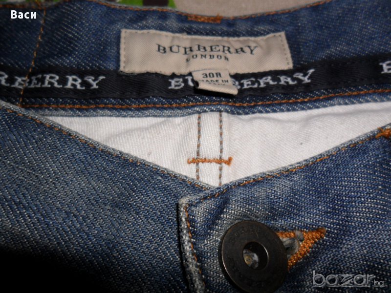 100 % оригинални автентични мъжки дънки в отлично състояние Burberry Jeans 30 Regular талия 39 см. ханш 53 см дължина 106 см. 100 % памук + подарък маркова риза бюст 55 см., дължина 74 см., ръкав 62 см. от рамото.