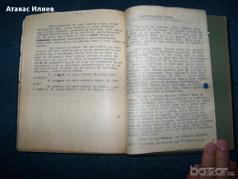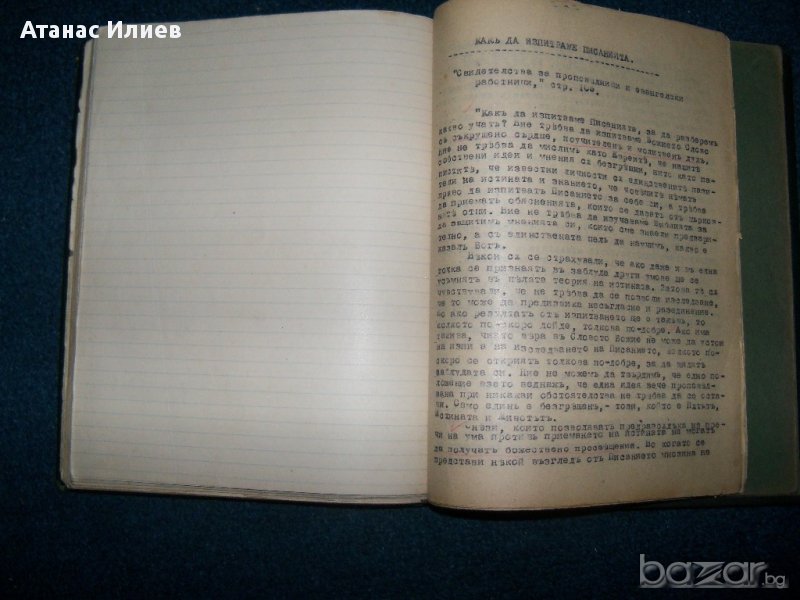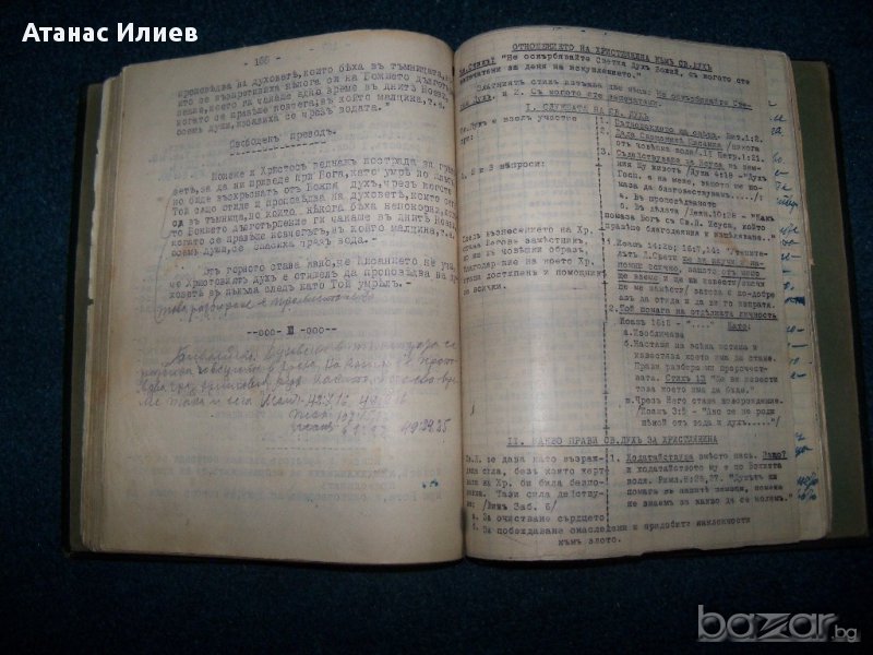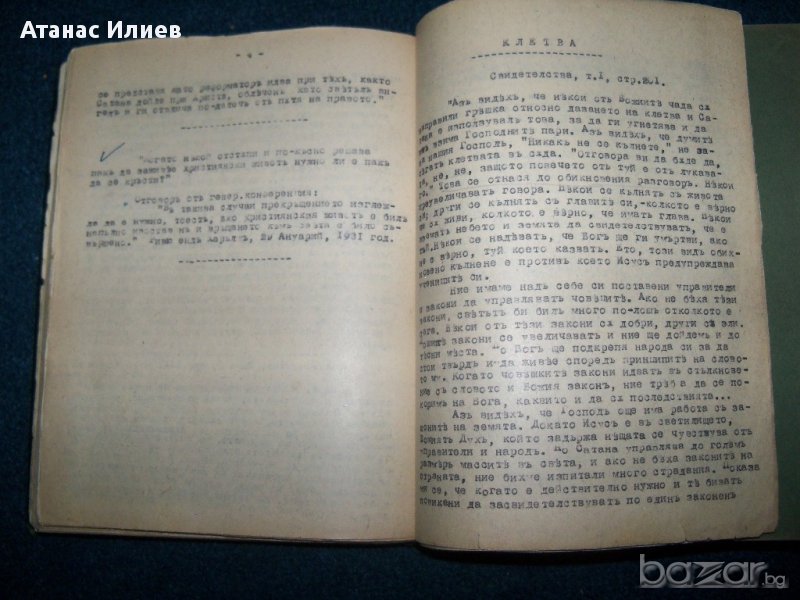 Уникален стар сборник с религиозни текстове, вероятно на адвентитсклън Уайт. Книгата е набирана на печатащамашина, като има и част ръкопис. Част от заглавията отбелязани в сборника са : Отношението на християнина към Библията; Отношението на християнина към Светия дух; Библейско сътворение; Свидетелства за проповедници и иевангелски работници и др. Книгата е подвързана с твърди корици, над 200 стр. Печатните страници са със стария правопис, а ръкописните с новия.