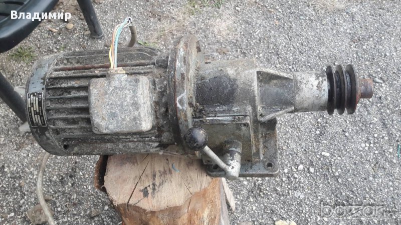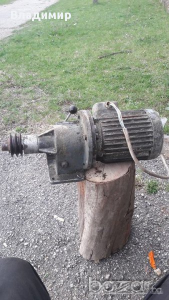 Ел. мотор трифазен със вгръден редуктор с 2 скорости и с двуканална шаиба работи много добре липсва капака на перката