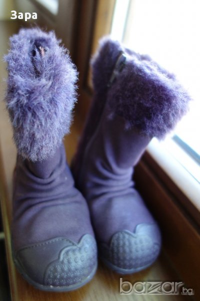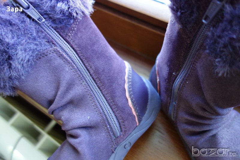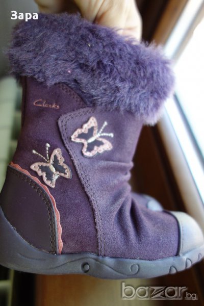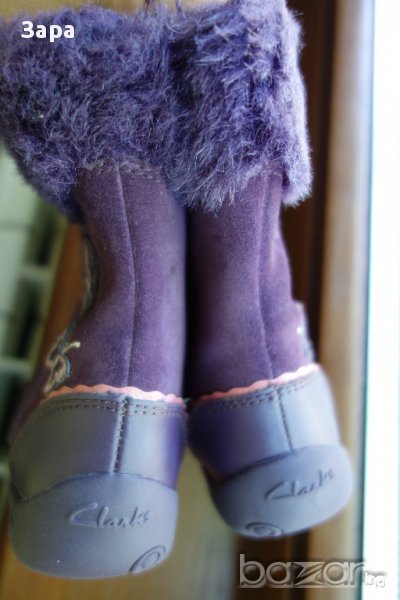 Красиви велурени ботуши Кларкс. Размер 4,5G или 20,5ти номер за нормално или по-пухкаво краче. Имат цип от вътрешната страна, леко набрани са отпред, тъмно лилави. Без кутия са.
