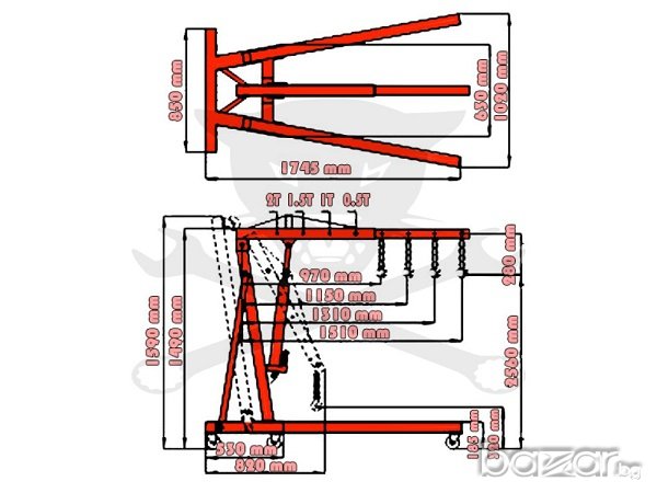 Четири позиции на стрелата: Іпоз-0.5t; IIпоз-1,0t; IIIпоз-1,5t; IVпоз-2,0t