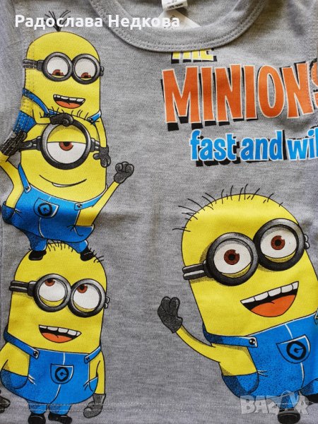 Страхотна памучна сива блузка с Миньоните. Българско производство! Налични размери - 86 см.