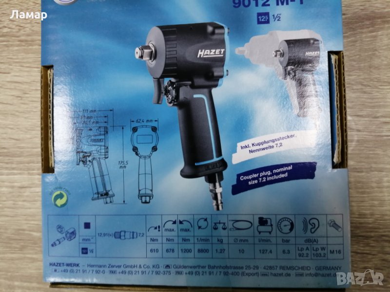 Гайковерт пневматичен 1/2 1200Nm производител: HAZET- Германия.