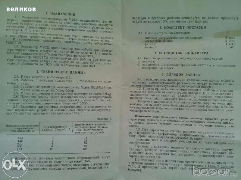 измервателен уред СССР волт ампер 1,2,3,6,12 и упътване за използване гаранционна карта