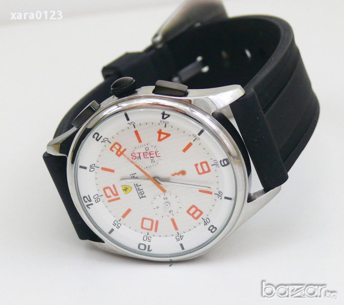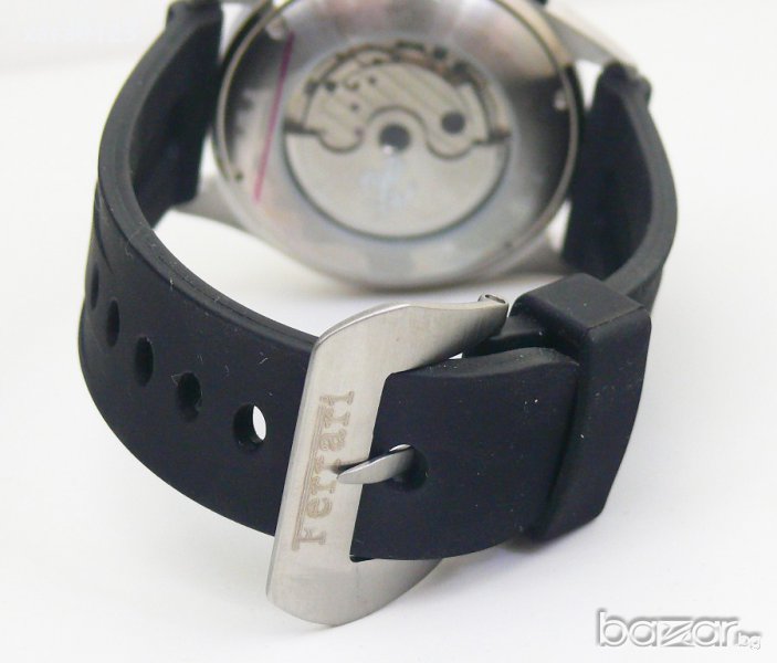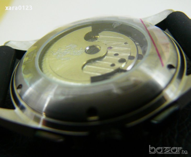 Луксозен ръчен часовник , автоматик, стоманен корпус, циферблат показжащ час, минути, секунди, дата, ден от седмицата, черна каучокова каишка. Каса 45мм. без бутоните.