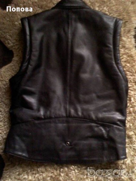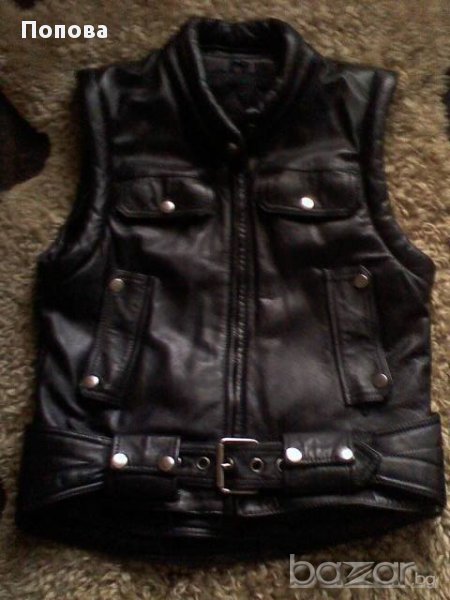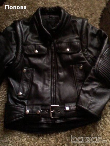 Перфектно състояние.Уникален модел от здрава естествена кожа ,наситено черен цвят,пипнато до най-малкия детайл,с подвижен колан и свалящи се ръкави.Стои супер.Отговаря си на номера.Цената е без коментар.