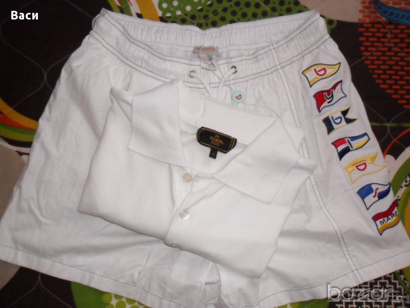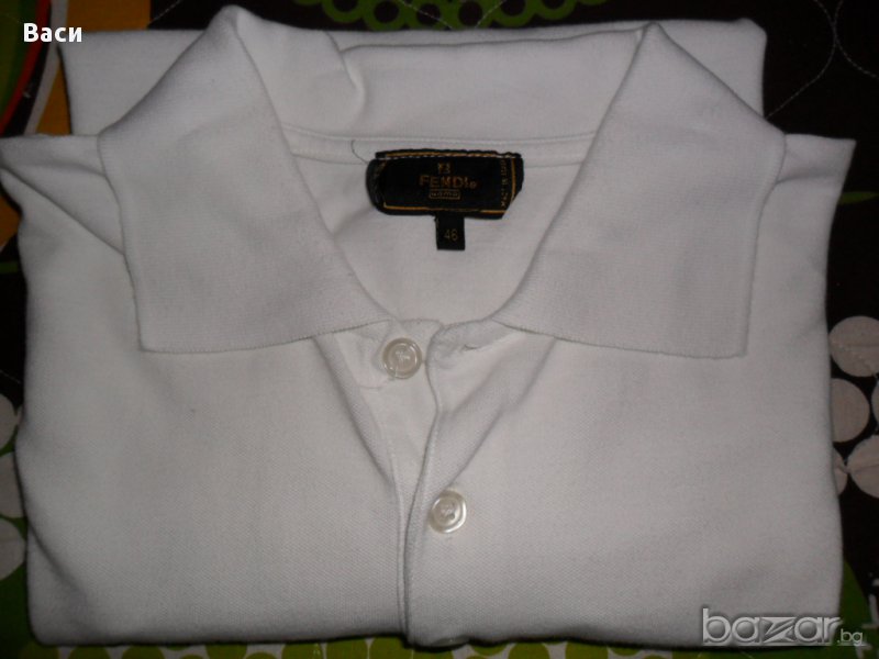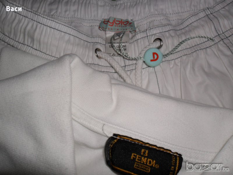 Fendi оригинална мъжка блуза, само пробвана бих казала нова затова я слагам в графата нова. Размер 46 дължина 62 см., бюст 51 см. + подарък нови къси оригинални панталони Byblos размер 50 талия 35/48 см., дължина 38 см., и двете са 100 % памук