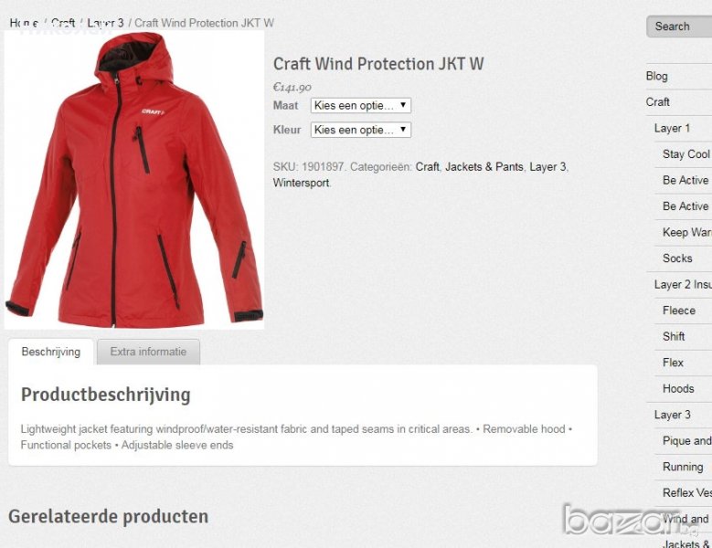 Якето е изключително запазено. няма отлепени шевове или други видими следи от употреба.цена чисто ново е 129€тук може да го разгледате http://ultimatesports.nl/craft-wind-protection-jacket-women-1901897.html