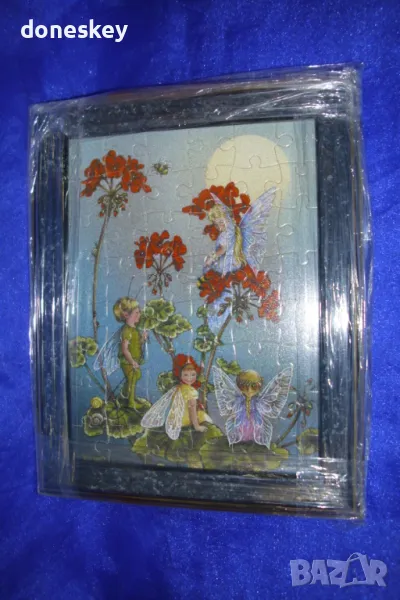Продавам колекция от 4 вълшебни пъзела, отразяващи приказната страна на феите. Пъзелите са рамкирани, но не са залепвани, така че могат да се изваждат, да се нареждат и отново да се прибират в рамката си. Размери: 17х24 см.