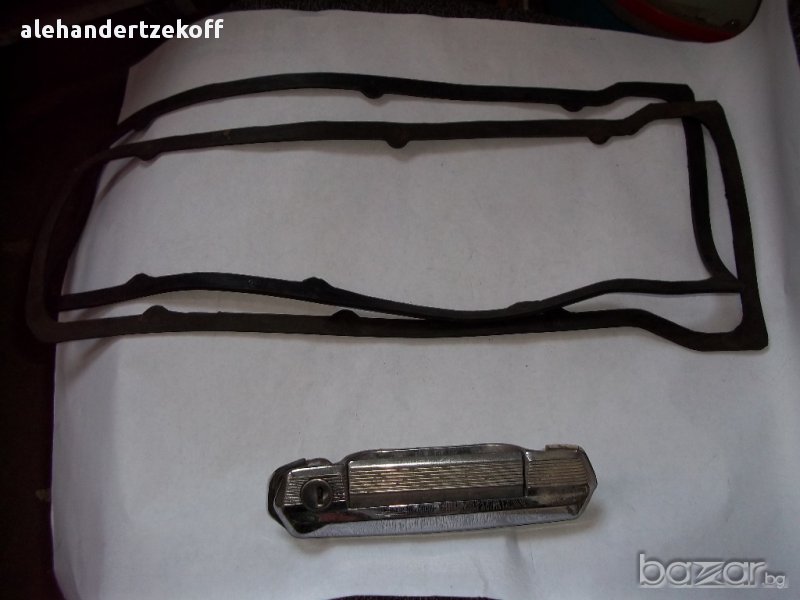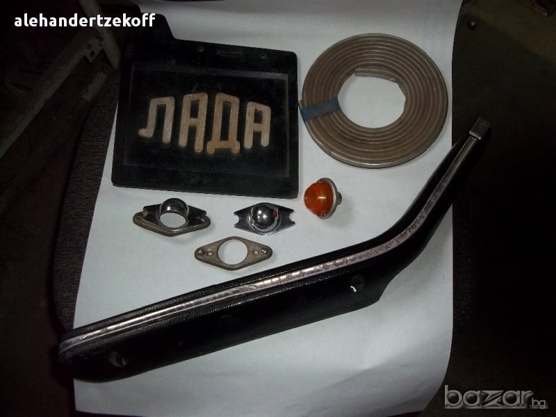 Калобран нов-10лв; лайсна около 4м -20лв ,много трудно намиращи се основи с капаци /комплект /, за осветление на номера върху задна броня ,хром /никел -50лв , мигач калник /габарит/ нов с основа -10лв;дръжка вътре врата-20лв -продадена ;кабели комплект за акумулатор -20лв-продадени ; гарнитури капак клапани 2бр по 8лв ; дръжка врата външна 20лв ;феродо съединител 190/120/4мм -6бр по3лв за брой . 4 бр джанти по 20лв ; гума,,мишелин'' 155/70/13 в добро състояние с джанта 35лв; Цените може да се коментират до споразумение.