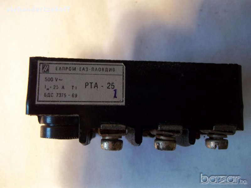 Контактори К6Е бобина 36в -3бр по 20 лв -два броя продадени , контактор К0 500в 4А -2бр -продадени ,6,3А -1бр бобини 220в по 20лв ; контактори К11 -16а и 10а с бобина 220в по 20лв за бр-продадени.; бутони ВТ 336- 4 бр ,ВТ 334-4бр по 10лв, щепсели трифазни 3/16а малък размер 87 бр по 5лв, звънчеви бутони 10бр по 3 лв ,реле топлинно биметално РТБ 0 -500в 8-4А -10бр ,16-8А -1бр ,6-3А -1бр по 20лв, топлинна защита РТА -25-500в-1бр -10лв -продадена.Контактор ,,merlin gerin ''F 70 16А 380В /оригинален френски/- 100лв. ,чехски ретро контактор ,,JM 023-С-380в 4,6А -70лв. Цените може да се коментират до споразумение.