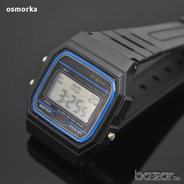Нов ръчен електронен часовник с класическа визия, като първите електронни часовници. Черен.Функции: час, дата, аларма хронометър, светлина.Моля, вижте снимките, ако имате въпроси - питайте.