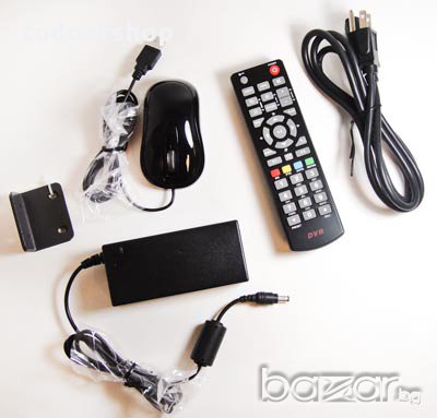 Комплекта включва: - DVR - USB мишка - дистанционно управление -
