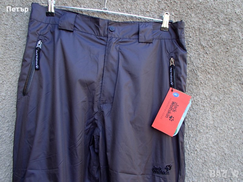Продавам чисто нови мъжки водоустойчиви панталони Jack Wolfskin. Моделът има странични гумирани ципове за бързо обличане, дишащ хастар, вградени гети и три