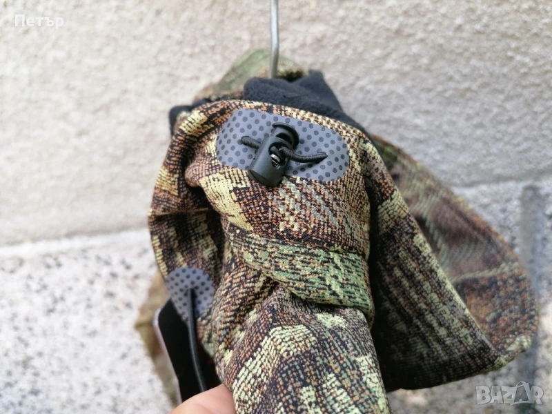 Материалът е трислоен - тънък полар отвътре, водоустойчива мембрана по средата и външен разтеглив слой незадържащ влага - залепени заедно.