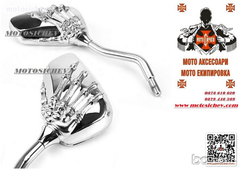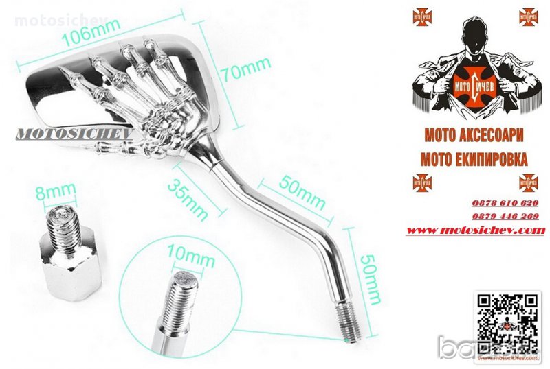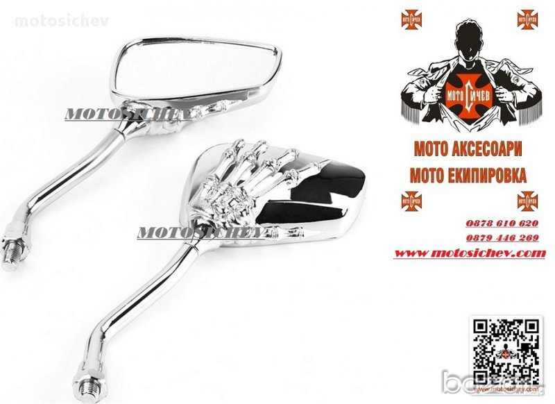 МОТОЦИКЛЕТНИ ХРОМИРАНИ ОГЛЕДАЛА - РЪКА НА СКЕЛЕТ.