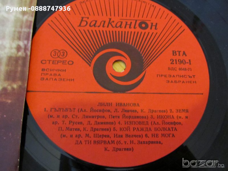 Грамофонна плоча Лили Иванова Балкантон - плоча за колекционери и ценители !