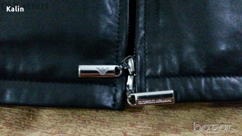 Giorgio Armani - Кожено яке от най-висококачетвен тележки бокс,лазерно и нано обработване против намокряне. Подплата от 3 см. Агнешка кожа - тоскана. 6 бр.джобове с цип и един с магнит. Големия цип е двойно делим отгоре и отдолу. Изключително екстравагантно топло и удобно спортно-елегантно яке,леко и много качествено. Размери: Ширина на раменете- 54см. Дължина от яката до кръста- 75 см. Дължина на ръкав отвън- 65см. Дължина на ръкав отвътре- 45см.