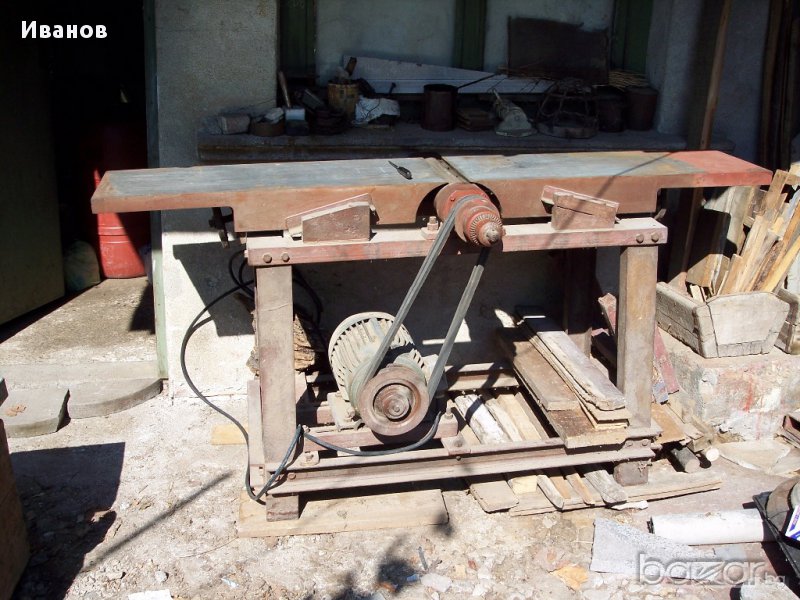 1/ Продавам абрихт, трифазен двигател, стоманени плотове от "П" образен профил, дълъг 160см, ширина 30см, ножове 30см, двата края на оста са използуваеми:- едният край е с планки и гайка за поставяне на наличен циркулярен диск 30см, другият е за патронник за свредла, има кабел 4м, трифазен щепсел. Предаване с трапецовиден ремък. Небетонирана е основата. Регулиране може поотделно на височината и наклоните на предната и задната плочи от плота.