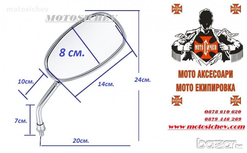 ХРОМИРАНИ МОТОЦИКЛЕТНИ ОГЛЕДАЛА.ЗАХВАЩАНЕ 10мм.РЕЗБА