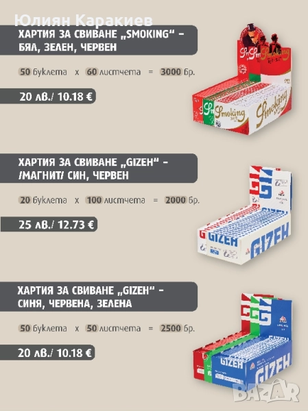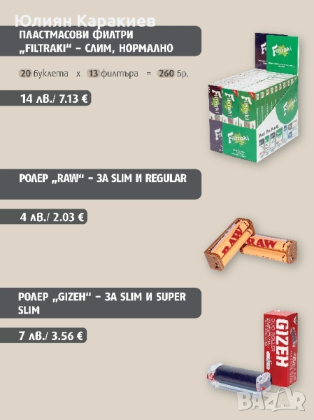Филтри и листчета за цигари