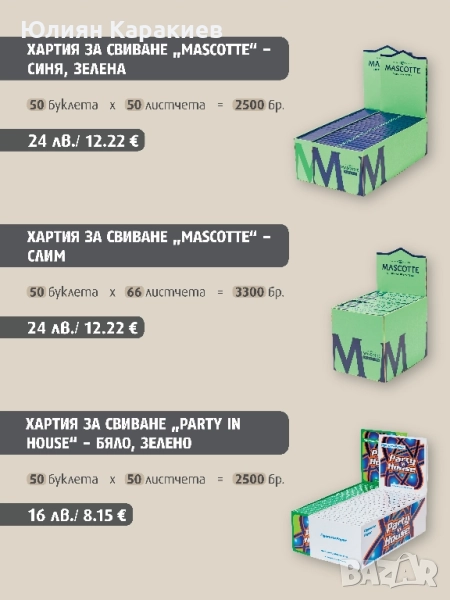 Хартия за свиване "Rizla,, зелена. Една кутия съдържа 100 буклета по 50 листчета, общо 5000 листчета - 46лв./23.38€