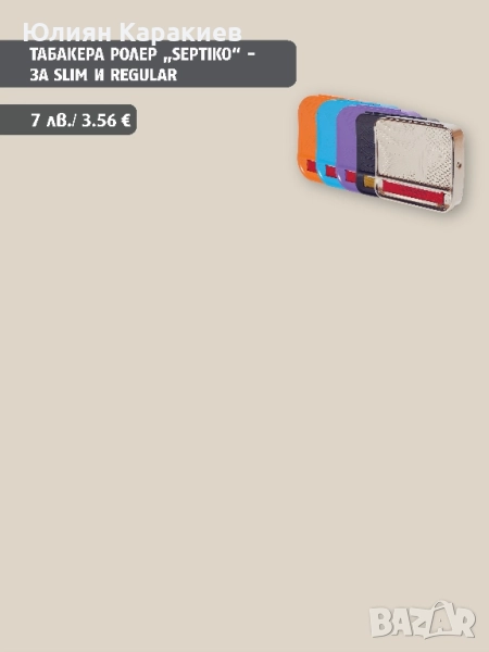 Табакера ролер "SEPTIKO" за Slim и Regular. Цена: 7лв./3.58€