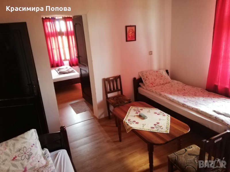 тройна стая със спалня и единично легло; два апартамента с по две стаи, като едната е със спалня , а другата с две единични легла. Стаите са с цифрова телевизия, безжичен интернет, локално парно, самостоятелен санитарен възел.Гостите могат да ползват просторна механа с камина, както и лятна тераса с барбекю. Стратегическото място на къщата дава възможност за пътувания до близките Ковачевица, Долен, Делчево, Лещен, Хаджидимовски манастир. До Кавала – Р Гърция се