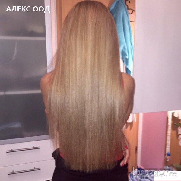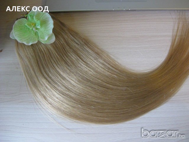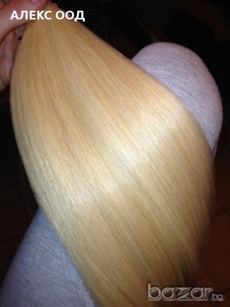 Тресата е със 30% естествен косъм и се предлага в три цвята...Русо с лек Пепеляв отенък , Светло Русо ,и Русо със Златист отенък . Ширина 25см.(от ухо до ухо),дължина 60см. с клипси готови за слагане.