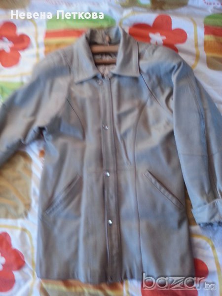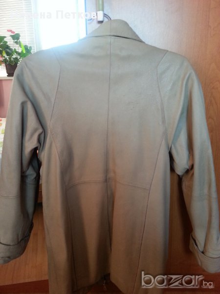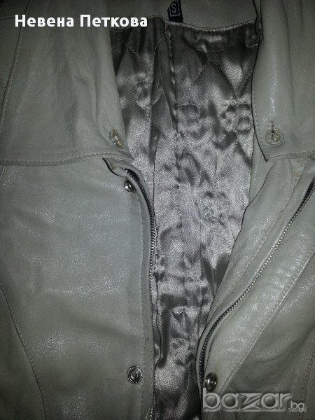 Кожено палто три/четвърти на дължина, от естествена кожа, цвят бял - слонова кост, с подвижна сваляща се яка. Размер №38-40 / М или българска номерация около № 44-46. Много добре запазено, с метални копчета отпред, но има и цип отвътре, който нещо изпуска, може да се смени. Но и така само с копчетата може да се носи. Отговарям на съобщения тук, изпращам с куриер с отстъпка, преглед и тест, или лично предаване в София.