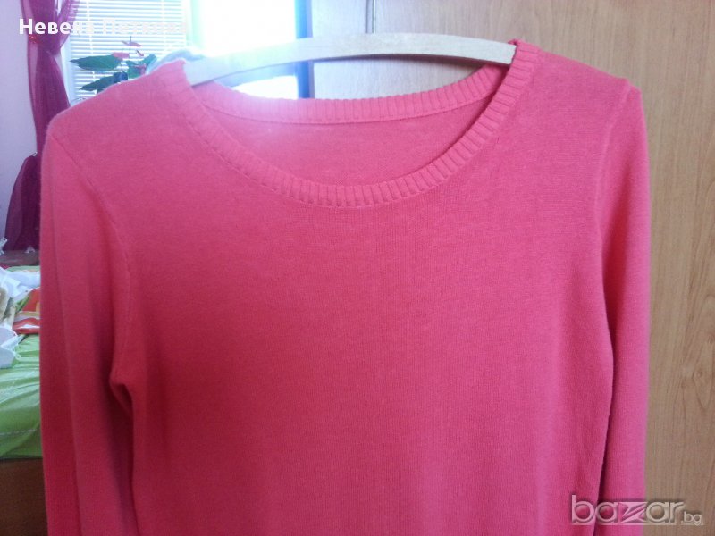 Елегантна дамска блуза от фин трикотаж, с удължен силует, много приятен розово-цикламен цвят. Размер около № 40-42 българска мярка