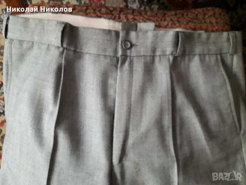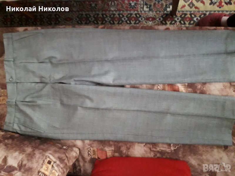 Koстюм мъжки - сако, панталон и елек, светлосив цвят. Чисто нов, неупотребяван № 52-54 българска номерация. Размери: Сакото е с ширина от рамо до рамо - 50-51 см, отпред на гърдите - 58 см /или 116 см обиколка/, дължина на сакото- около 78-80 см, дължина на ръкава - 60 см и 39-40 см от мишницата. Елека е с дължина 55 см, ширина подмишници 56 км отпред /или обиколка 112 см/. Панталонът е с размери: талия обиколка от копчето до илика - 96-98 см и дължина от колана до долу отстрани измерен от 102-до 105 см, а от чатала е 75 см и има подгъв за удължаване около 4 см. Отговарям на съобщения тук, изпращам с куриер или лично предаване в София.