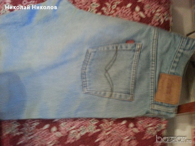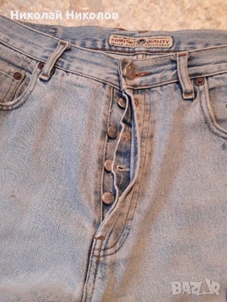 Дънки светлосини Motor с копчета отпред, 2 предни и 2 задни джобове, с по широки крачоли. Размер около М-Л, размери талия 46 см или обиколка 92 см, ханш 56 см или обиколка 112 см, дължина 98 см.