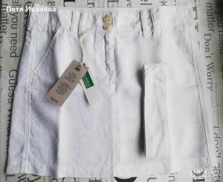 Дънкови поли Benetton оригинал. Късата е намалена на 64лв. Другите две дънкови са намалени на 85лв. Бялата от лен и следващата са по 50лв, другите три са по 35лв. Джинсова е 20лв.