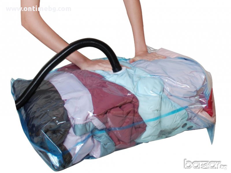 С Vacuum Compressed Bag печелите ценно пространство в гардероба! Край на безпорядъка вкъщи и в гардероба! Вече има ново решение да поберете обемисти неща в малко пространство! Умно и находчиво, компактно и лесно с Vacuum Compressed bag! Това е нов, чист и спестяващ място метод за съхранение и защита на всякакви текстилни изделия, покривки, завивки и възглавници.