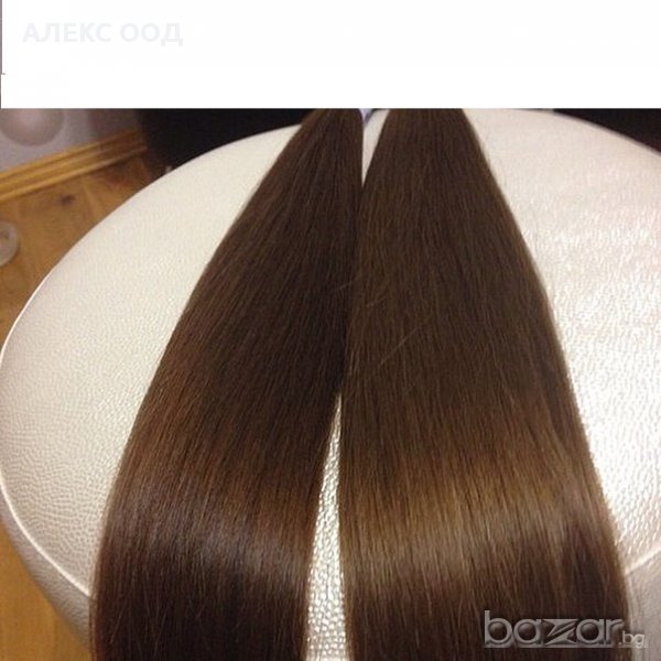 Удължителите са готови за слагане.Подлежат на термична обработка.Косъма е фин без блясък с 25% естествен примес .Дължината е 60см ,Гъсти 120 грама ,двупластови