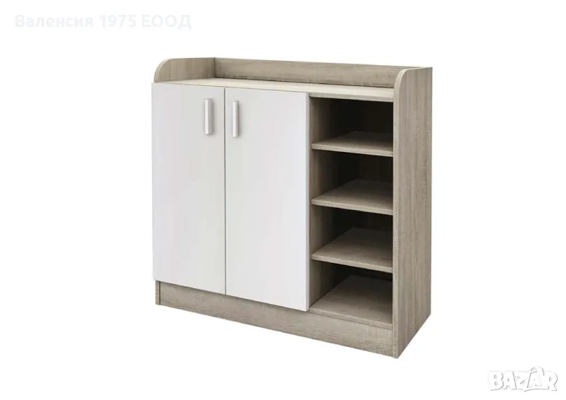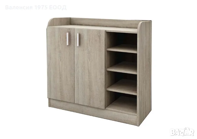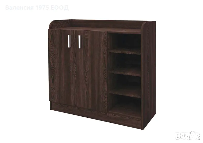 Шкаф за обувки с три открити рафта и три рафта в затворената част. Събира между 12 и 15 чифта обувки.
